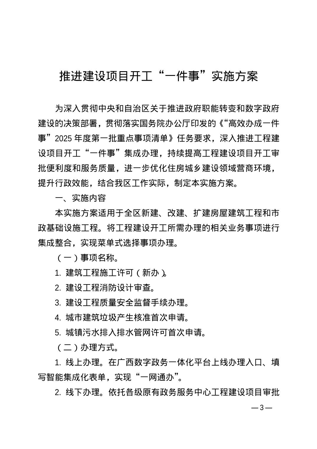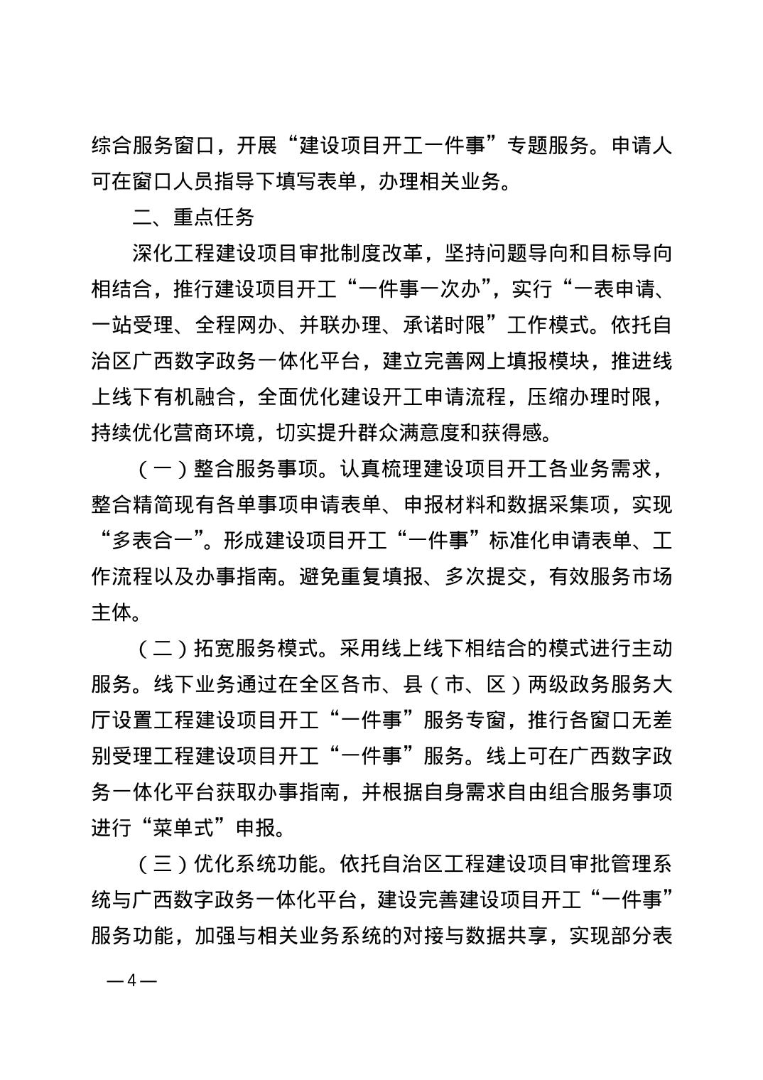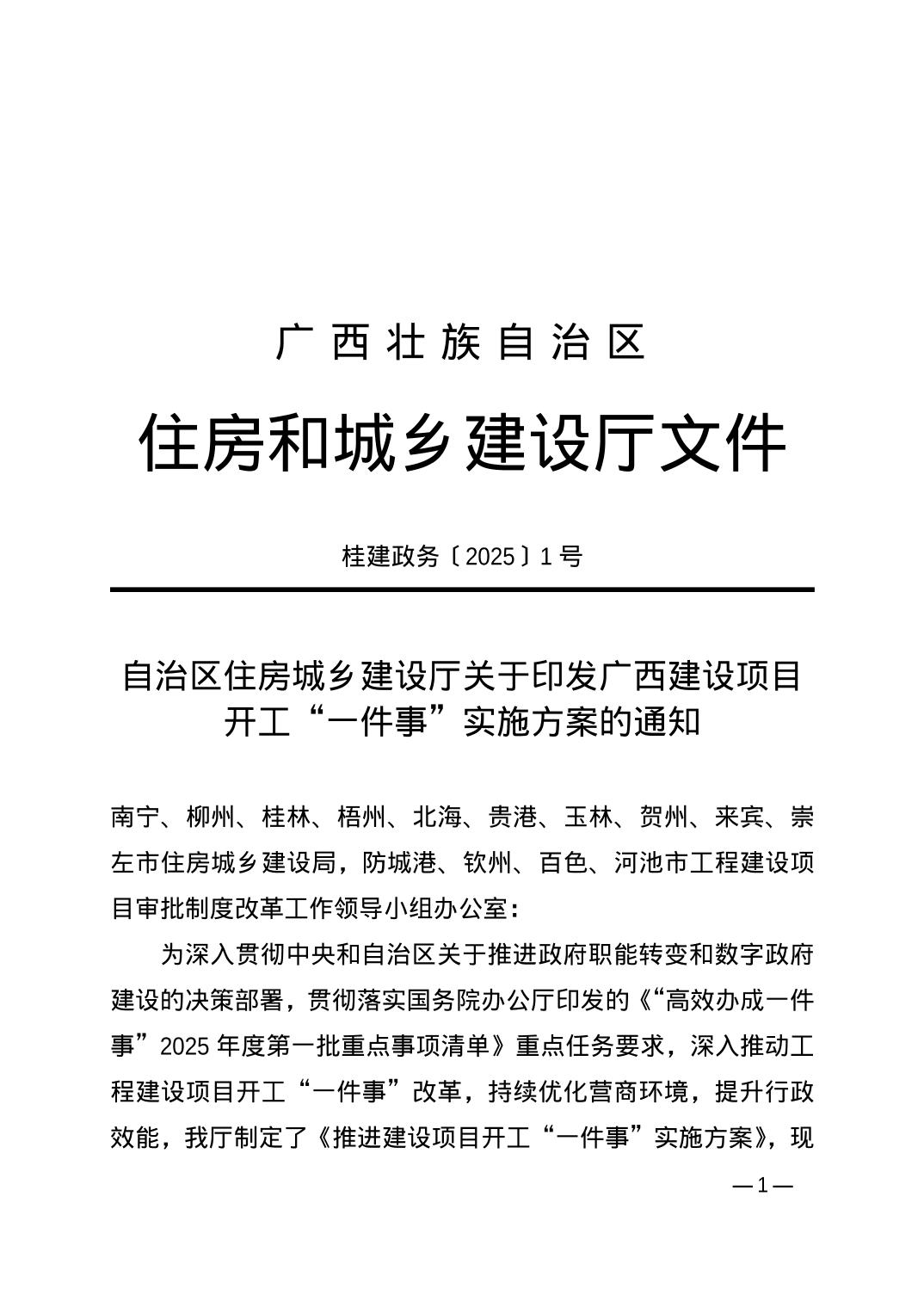 自治区住房城乡建设厅关于印发广西建设项目开工“一件事”实施方案的通知