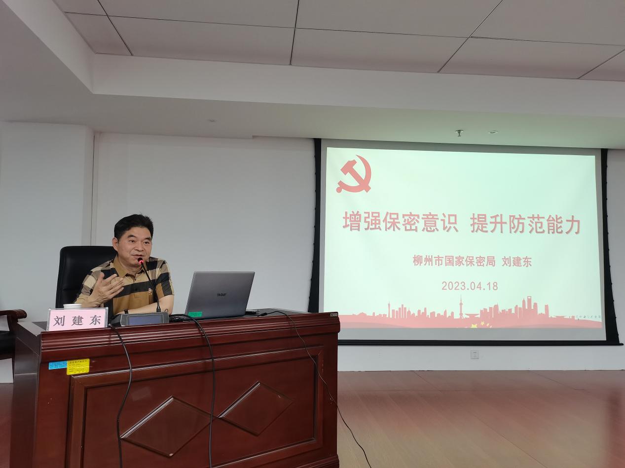 柳州市国家保密局法规宣传科科长刘建东同志以“增强保密意识 提升防范能力”为主题,为大家讲解了保密工作的地位、窃密途径及防范、常见泄密方式,内容详实丰富,具有很强的警示教育意义,进一步强化了住建系统干部职工的保密意识,提升了防范能力。