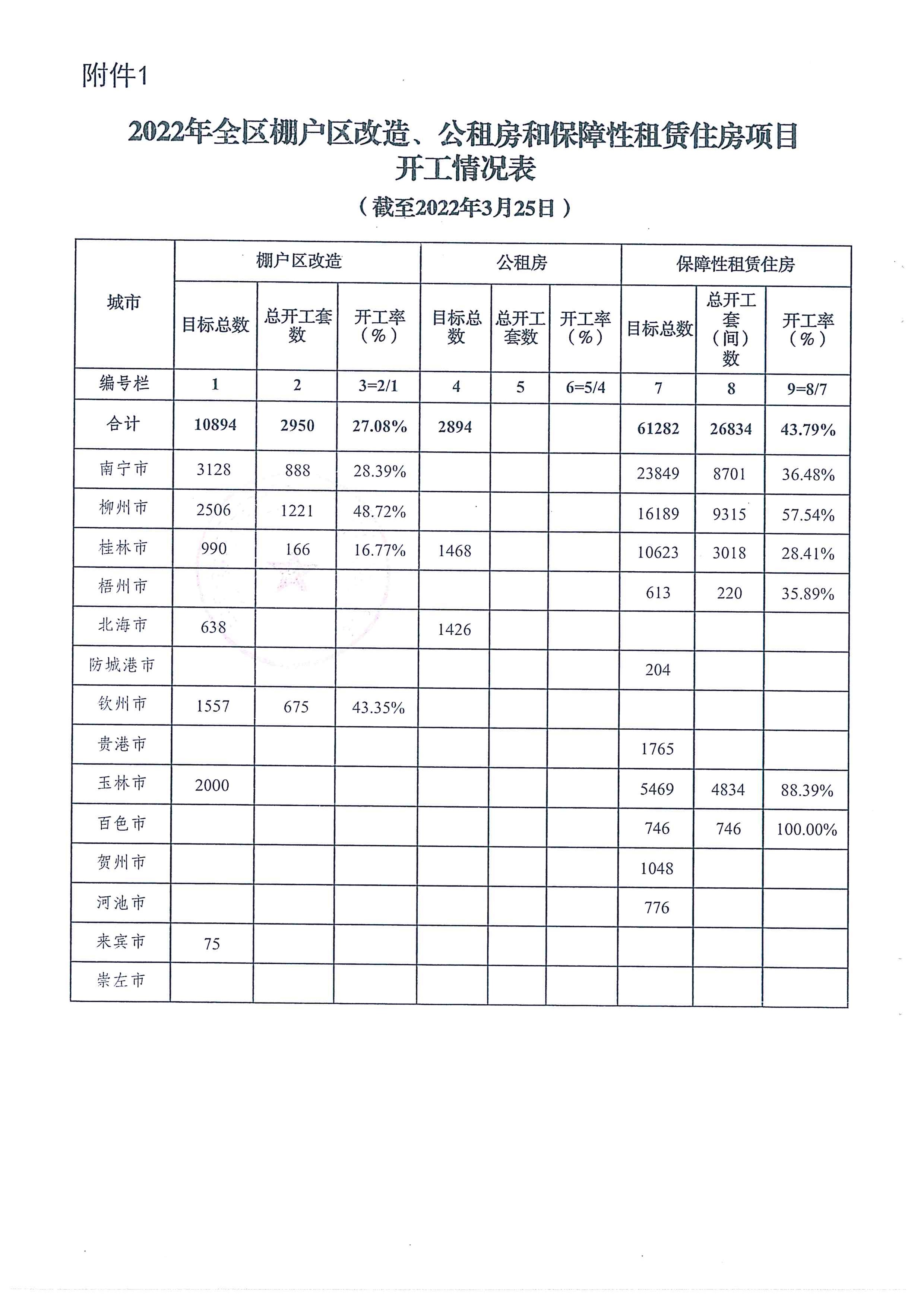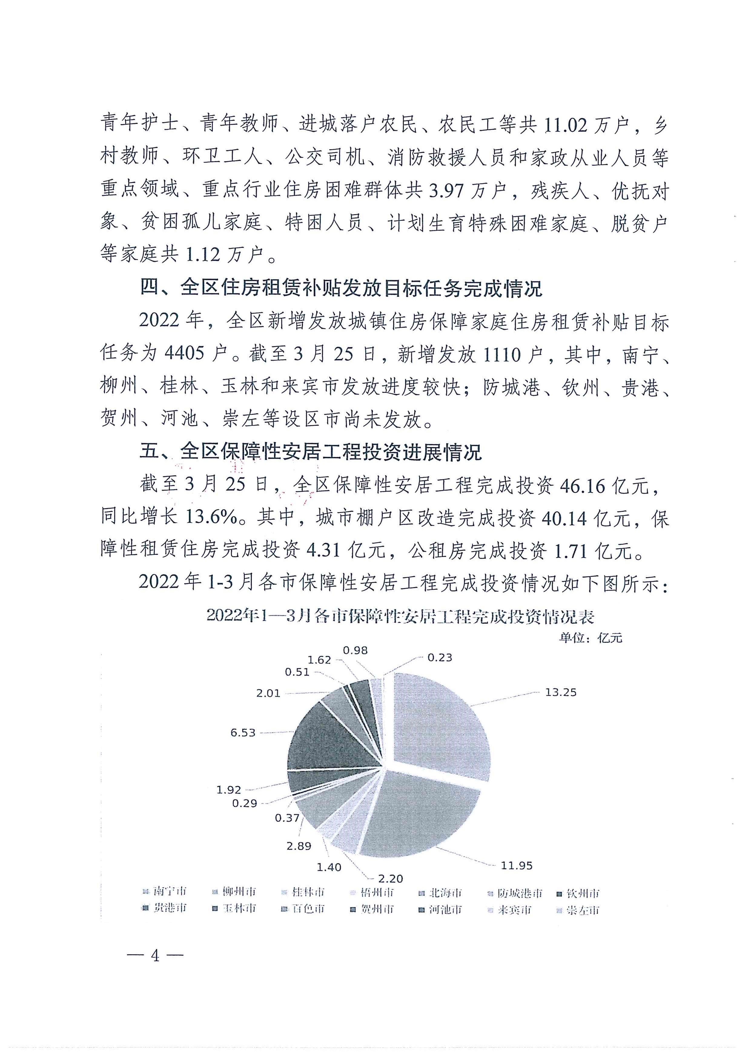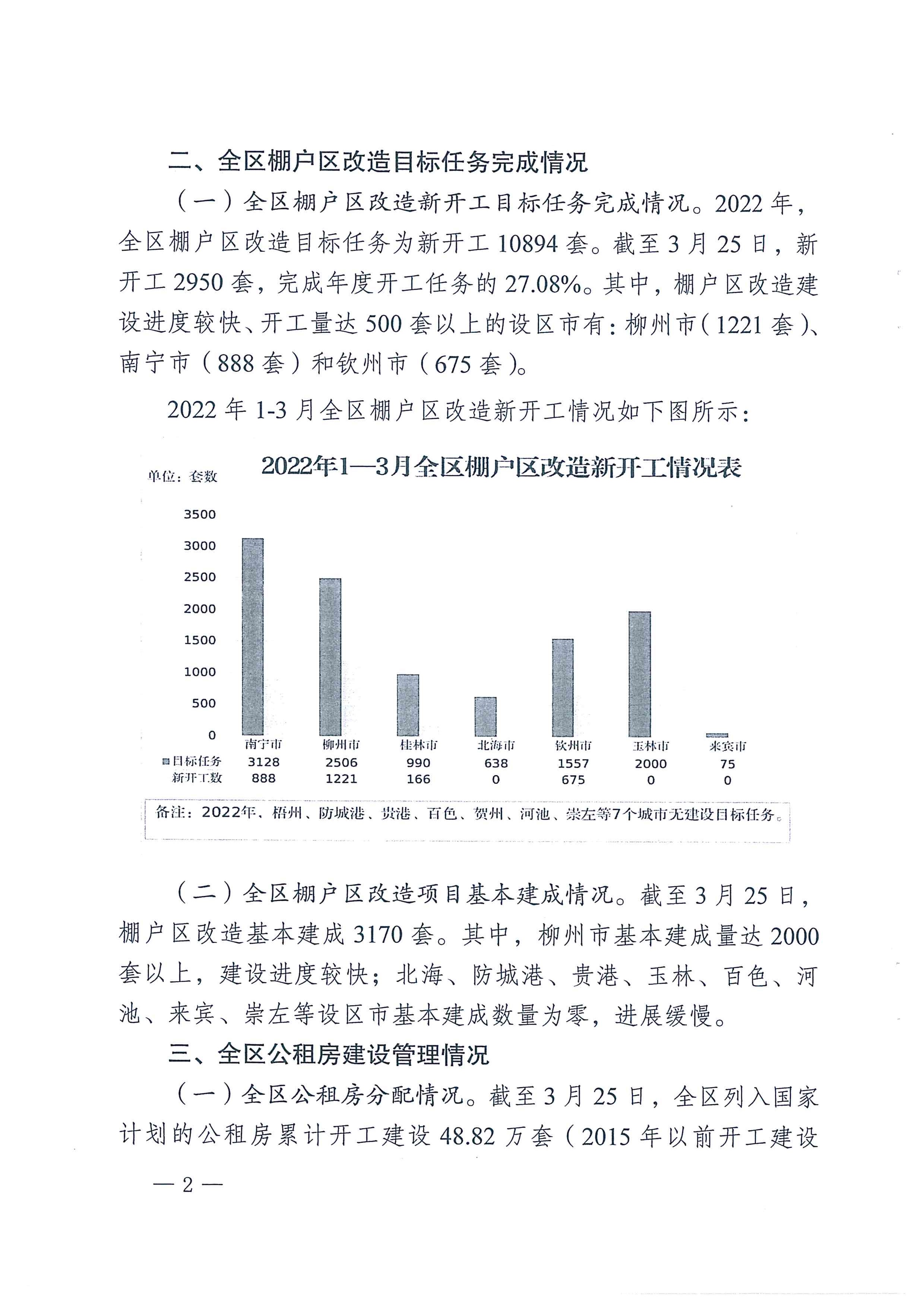 自治区住房城乡建设厅关于2022年1-3月全区保障性安居工程进展情况的通报