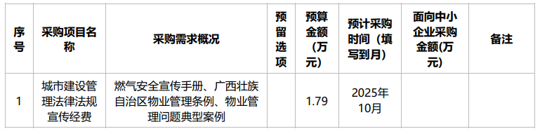 柳州市住房和城乡建设局2025年9月政府采购意向